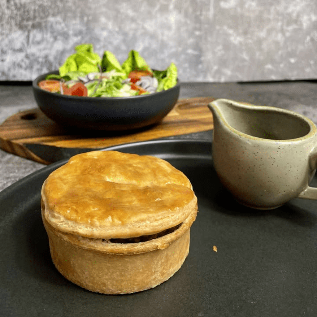 Home / Pies / Individual Steak & Haggis Pies (2 Pack) Individual Steak & Haggis Pies (2 Pack) In Stock (99876 Available) Product Code: 8028 Product Code: 8028 Stock Status: In Stock £6.19 Add to your Wish List Description Wholesome Steak & Haggis Pies (2 Pack) Treat yourself to our wholesome steak and haggis pies, generously filled with tender chunks of stewed Scotch Beef and our home-made haggis, all enveloped in a rich, flavoursome gravy. This unique combination creates a truly hearty and satisfying meala real treat for any steak pie lover. Packed with quality ingredients and bursting with flavour, these pies are perfect for anyone seeking something extra special. Order Now and experience the perfect blend of Scotch Beef and traditional haggis in every bite! Attributes Product Code: 8028 CookingRemove from wrapper and place in a preheated oven at 180’c / Gas 4-5 for 20-25 minutes.(If frozen defrost thoroughly before reheating). Individual ovens may vary, ensure piping hot throughout before serving. Tip: Place some kitchen foil (shiny side up) over the top of pastry and remove for last 10 minutes.Packaging & IngredientsKeep refrigerated and use within 3 days of purchase. If freezing freeze on day of receipt. Ingredients: Beef (27.7%), Gravy (Water, Cornflour, Modified Starch, Salt, WHEATFlour (WHEAT Flour, Calcium Carbonate, Iron, Niacin, Thiamin), Flavour Enhancer (Monosodium glutamate), Colour (Ammonia caramel), Onion Powder, Spices, Dextrose, Soya Protein Concentrate, Rusk (WHEAT Flour, Calcium Carbonate, Iron, Niacin, Thiamin), Salt, CELERY, (SULPHITES), WHEAT Flour (WHEAT Flour, Calcium Carbonate, Iron, Niacin, Thiamin, WHEAT Gluten), Water, Margarine (Palm Oil, Rapeseed Oil, Water), SOYA Flour, Salt, Margarine (Palm Oil, Water, Salt, Emulsifier (Mono-and diglycerides of Fatty Acids), Water, Haggis (Lamb Lung, Oatmeal (WHEAT), Salt, Rice Flour, Dried Onion, Spices (Pepper, Chilli), Wheat Flour (WHEATFlour, Calcium Carbonate, Iron, Niacin, Thiamin), Flavourings, Water, Beef, Black Pepper), EGG.